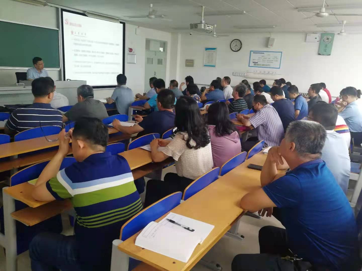 6月10日下午,党委常委、副校长白成林在东校区5号教学楼C303教室以《重温党的历史 坚定理想信念》为题,为分管部门、联系学院的党员干部讲授党史学习教育专题党课。